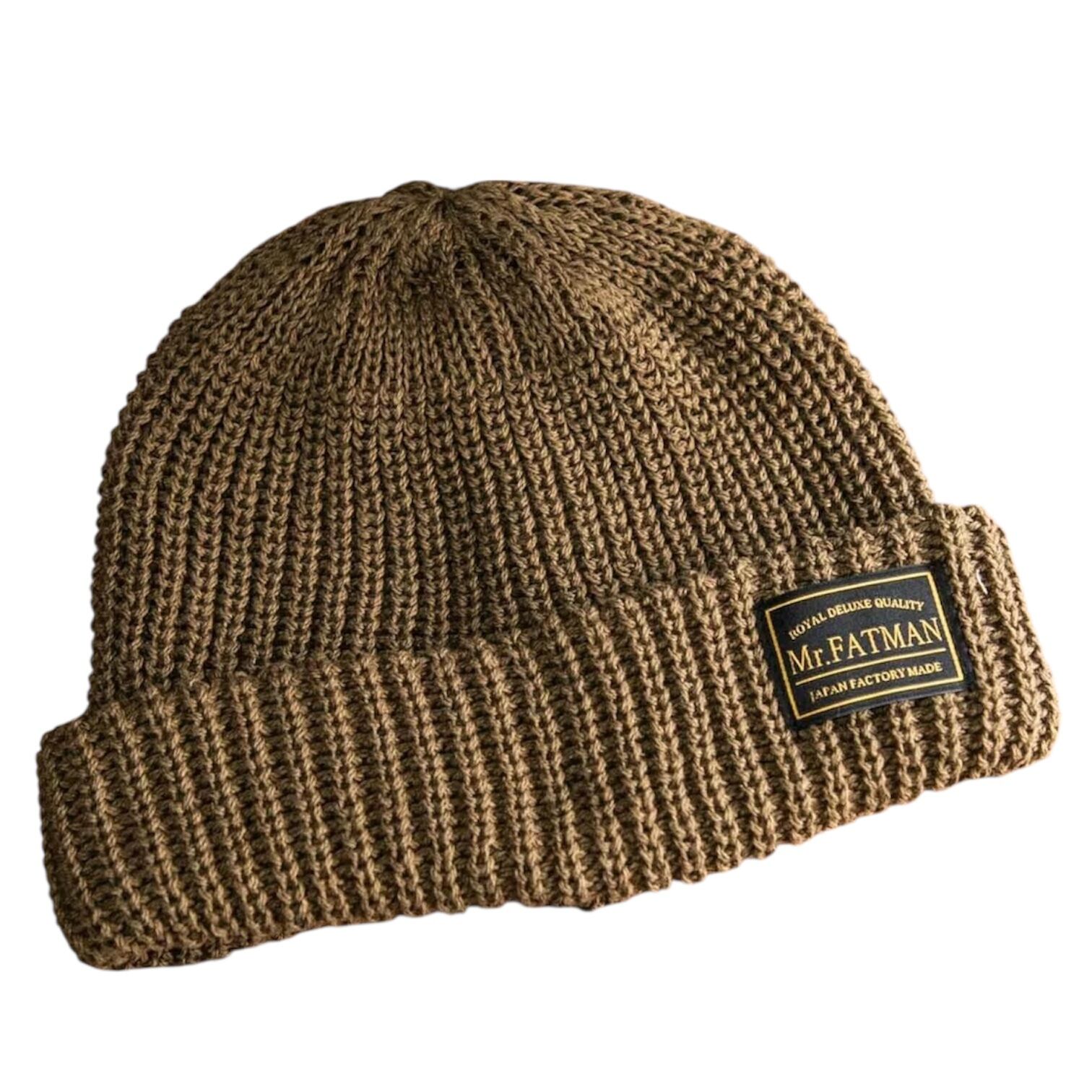 ヴァージンコットンの落ち綿(未利用繊維)100%の糸をベースに、リブ編みで編まれたショート丈のワッチキャップ。