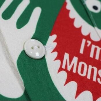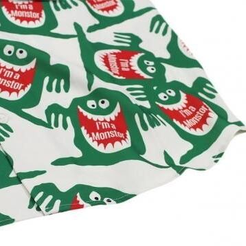 1960年代後半にお菓子メーカーから発売されたジュースの広告から誕生した“喉の渇きを襲うモンスター”を全面に配した総柄プリントシャツ。