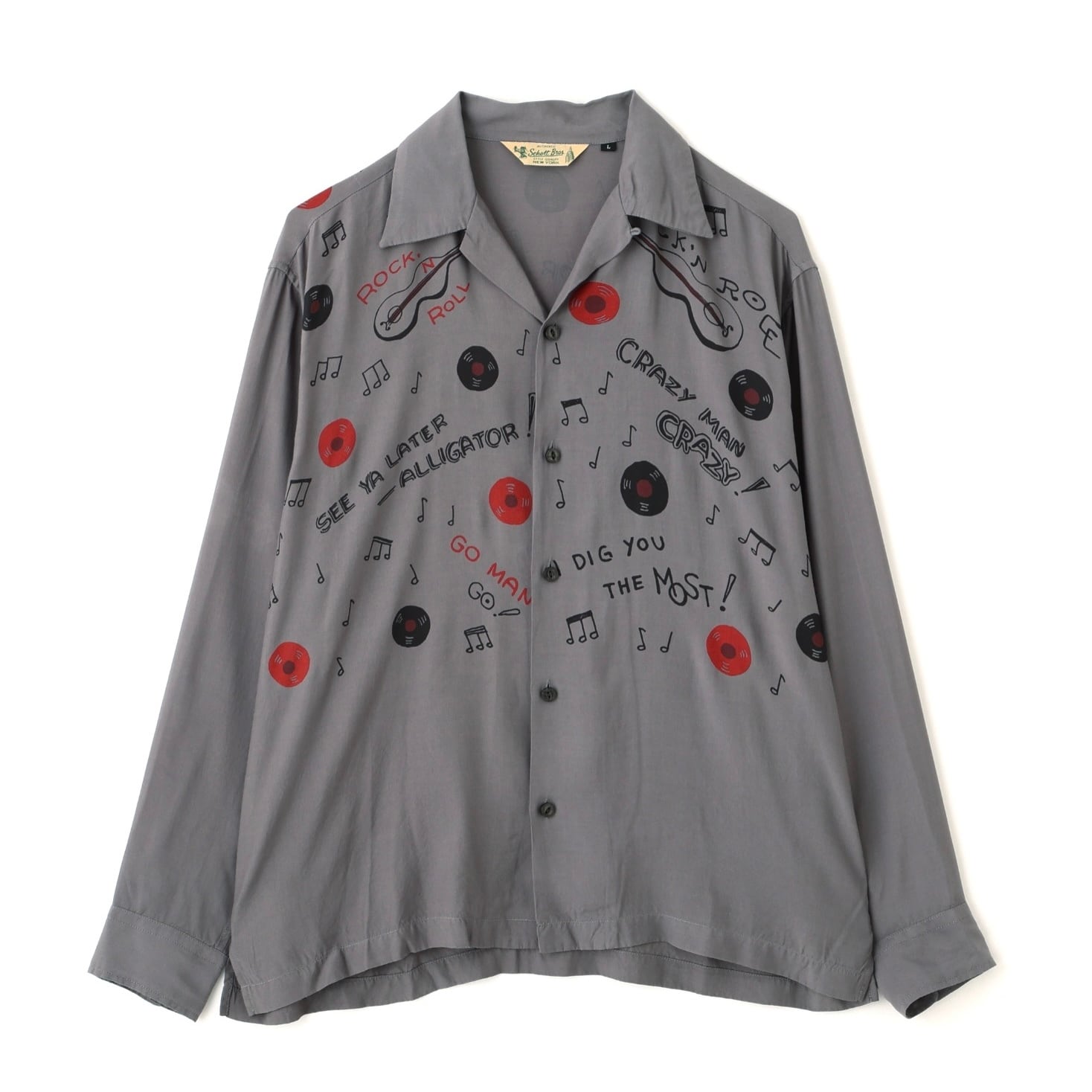 大胆な音符に、レコードや楽器モチーフを落とし込んだ“ロックンロール柄”。ヴィンテージ感と華やかさを兼ね備えた、大人のためのデザインです。